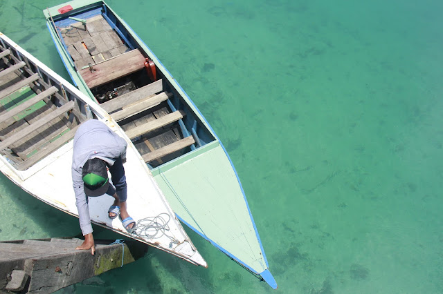 I woke up too late that morning so i was going there not at the best time. I was waiting for the shadow for the boat looked like floating on the water, but it didn't come up. The water colour was also tosca instead of blue. The locals said, i should come back tomorrow at 10.00 am- 12.00 am to get it.